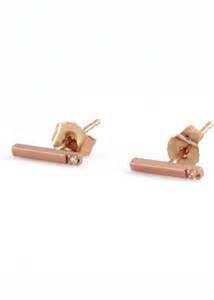 14k Rose Gold Bar Stud Earring with Round Diamond
