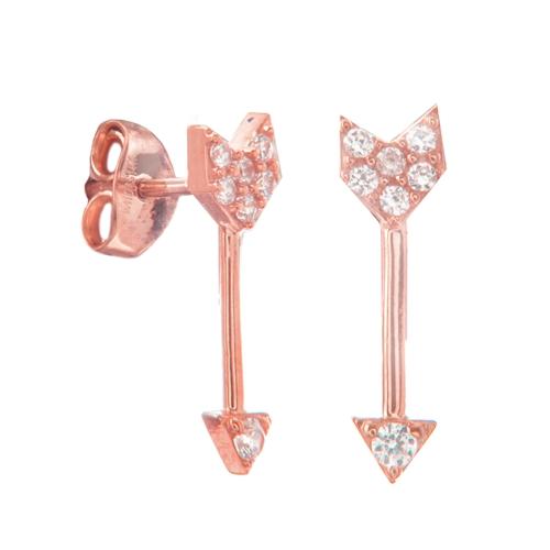 14k Rose Gold Crescent Moon CZ Stud Earrings
