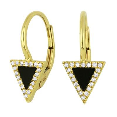 14k Yellow Gold Triangle Onyx And Diamond On Lever-back Earrings With 2=0.17Tw Trillian Onyxs And 40=0.09Tw Round H/I Si1 Diamonds