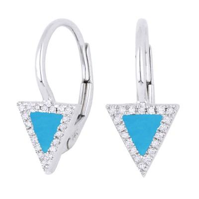 14k Yellow or White Gold Turquoise Triangle Onyx And Dia On Lever-back Earrings With 2=0.17Tw Trillian Turquoise And 40=0.09Tw Round H/I Si1 Diamonds